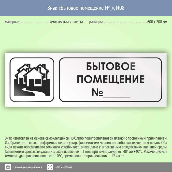 Знак «Бытовое помещение №_», И08 (пленка, 600х200 мм) в Ставрополе купить