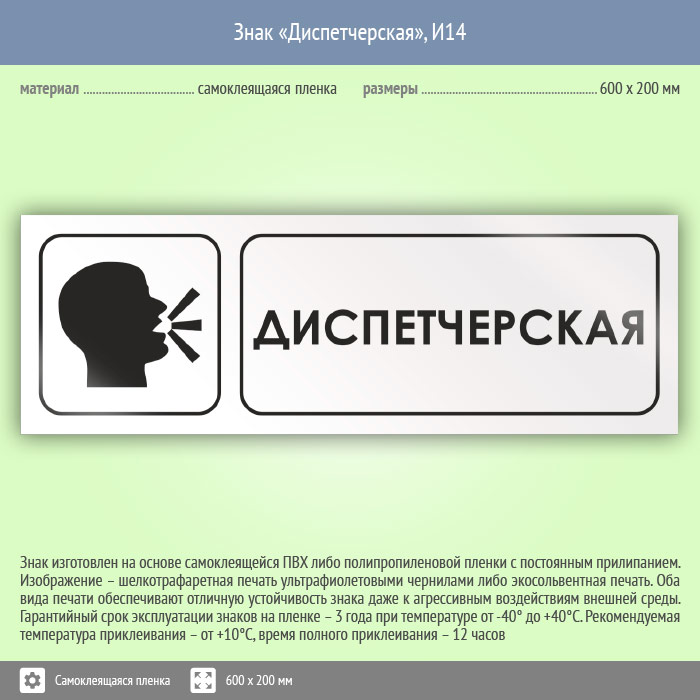 Знак «Диспетчерская», И14 (пленка, 600х200 мм) в Ставрополе купить