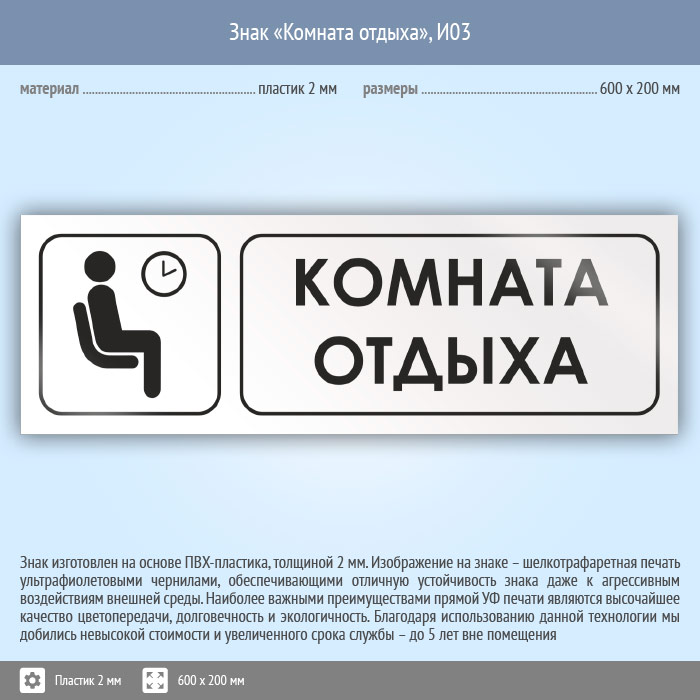 Знак «Комната отдыха», И03 (пластик, 600х200 мм) в Ставрополе купить