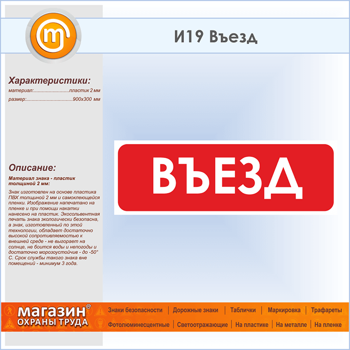 Знак «Въезд», И19 (пластик, 900х300 мм) в Ставрополе купить