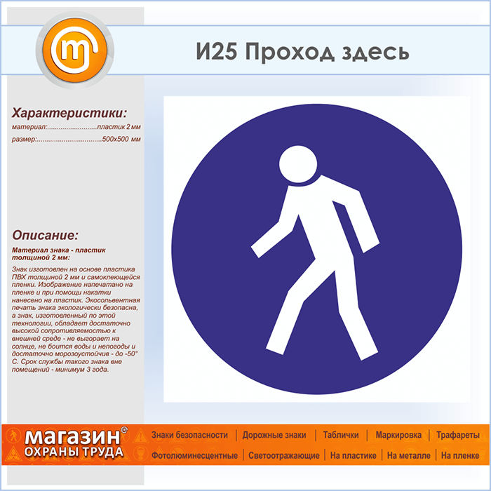 Знак «Проход здесь», И25 (пластик, 500х500 мм) в Ставрополе купить