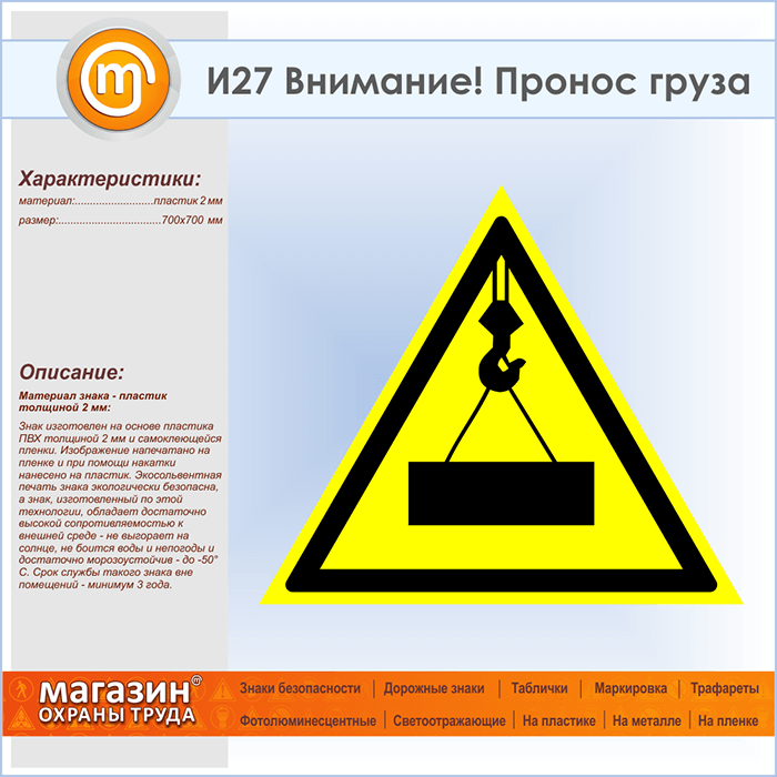 Знак «Внимание! Пронос груза», И27 (пластик, сторона 700 мм) в Ставрополе купить