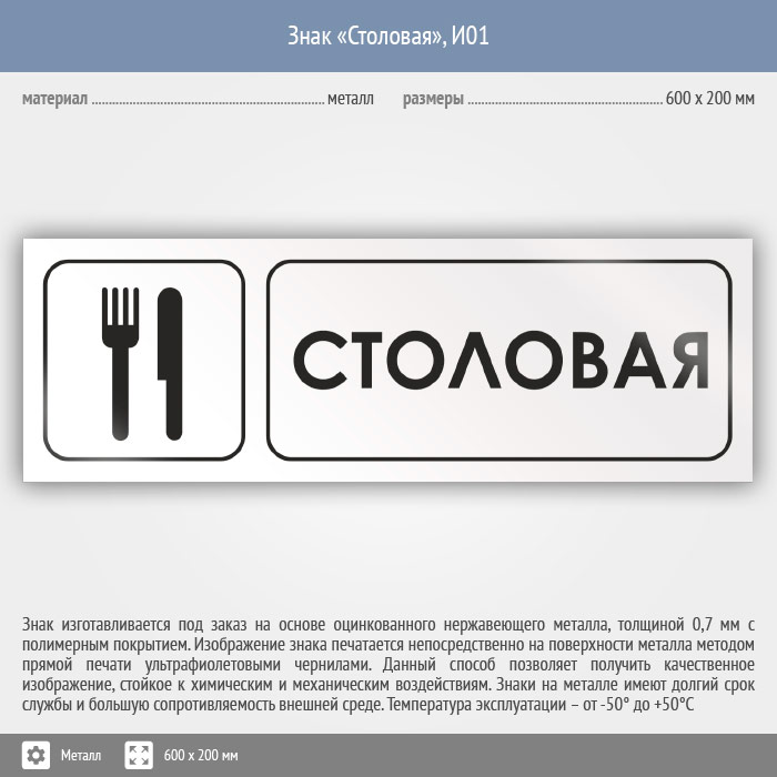 Знак «Столовая», И01 (металл, 600х200 мм) в Ставрополе купить
