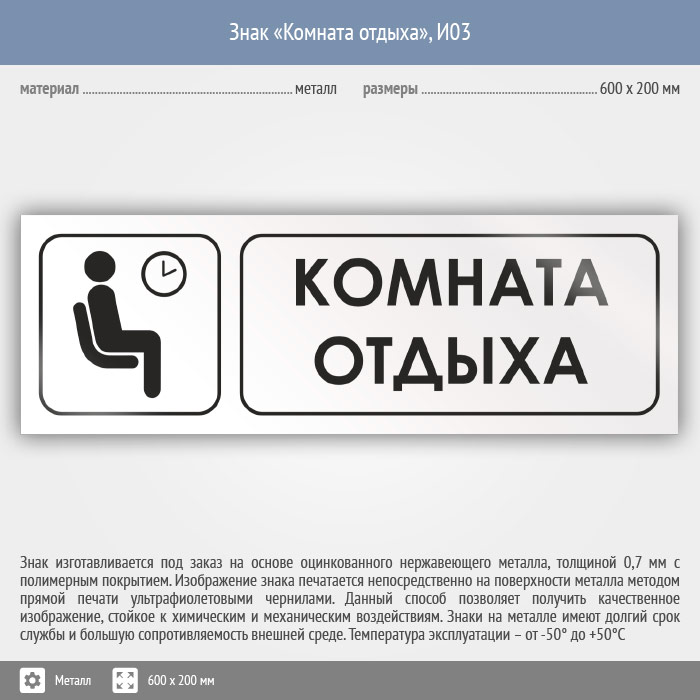 Знак «Комната отдыха», И03 (металл, 600х200 мм) в Ставрополе купить