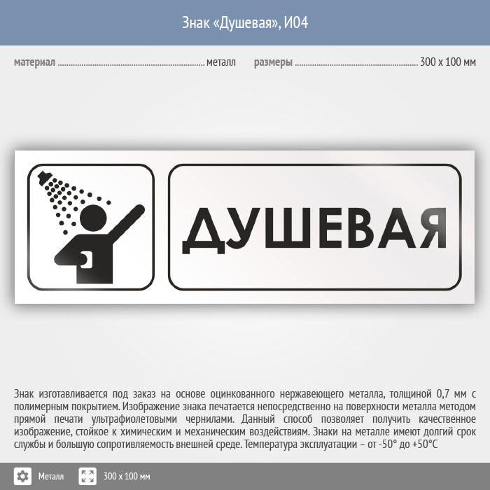 Знак «Душевая», И04 (металл, 300х100 мм) в Ставрополе купить