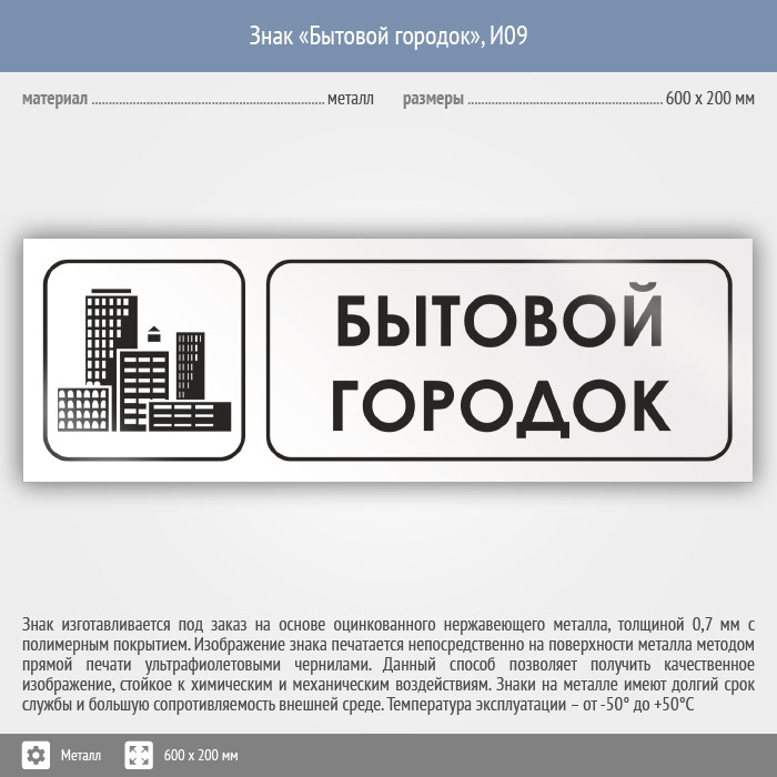 Знак «Бытовой городок», И09 (металл, 600х200 мм) в Ставрополе купить