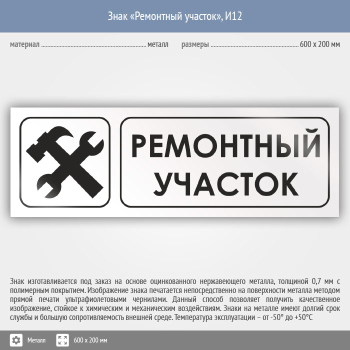Знак «Ремонтный участок», И12 (металл, 600х200 мм) в Ставрополе купить