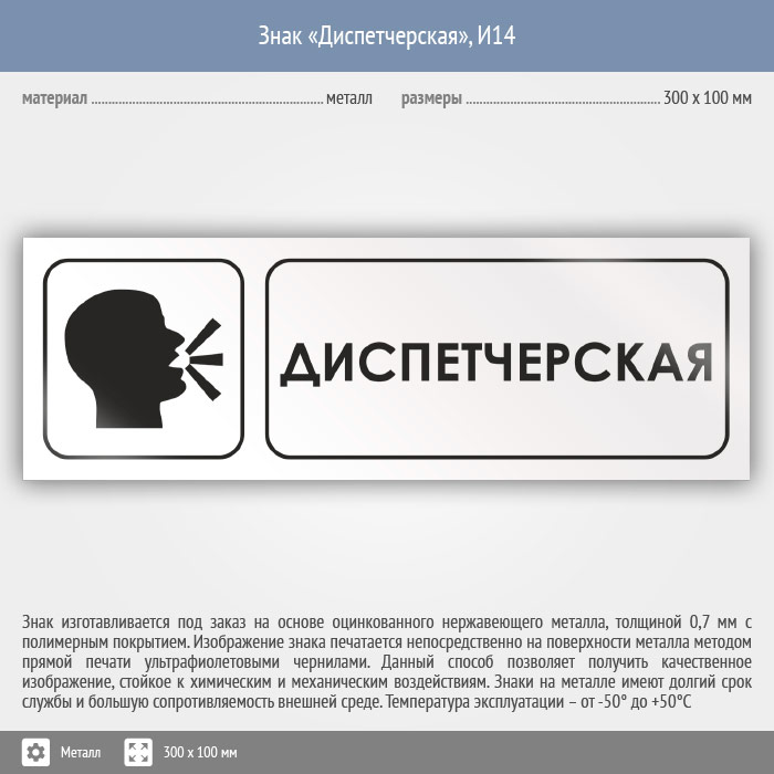 Знак «Диспетчерская», И14 (металл, 300х100 мм) в Ставрополе купить