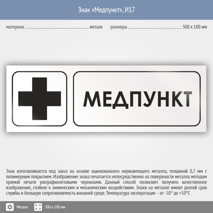 Знак «Медпункт», И17 (металл, 300х100 мм) в Ставрополе купить