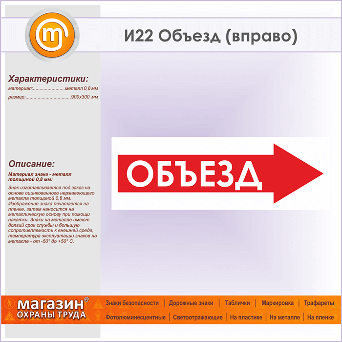 Знак «Объезд (вправо)», И22 (металл, 900х300 мм) в Ставрополе купить