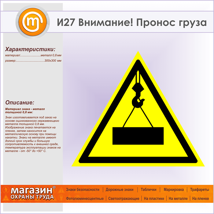 Знак «Внимание! Пронос груза», И27 (металл, сторона 300 мм) в Ставрополе купить