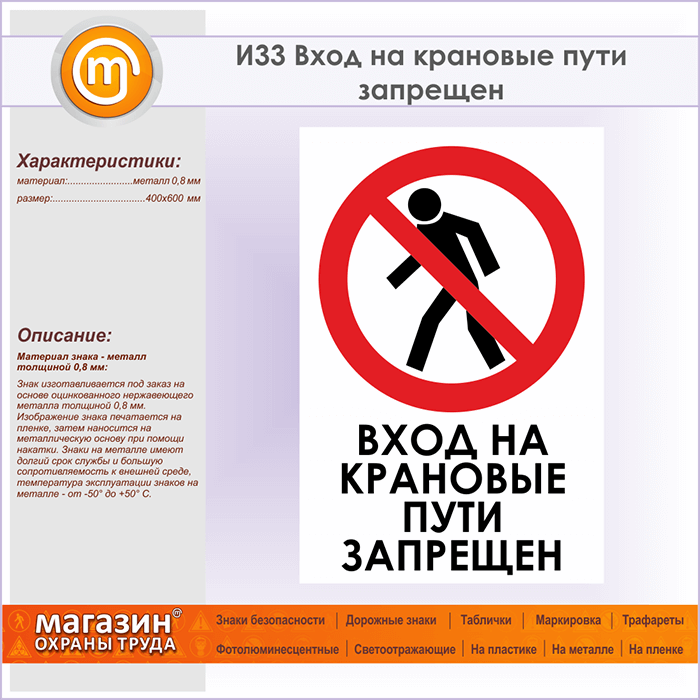 Знак «Вход на крановые пути запрещен», И33 (металл, 400х600 мм) в Ставрополе купить