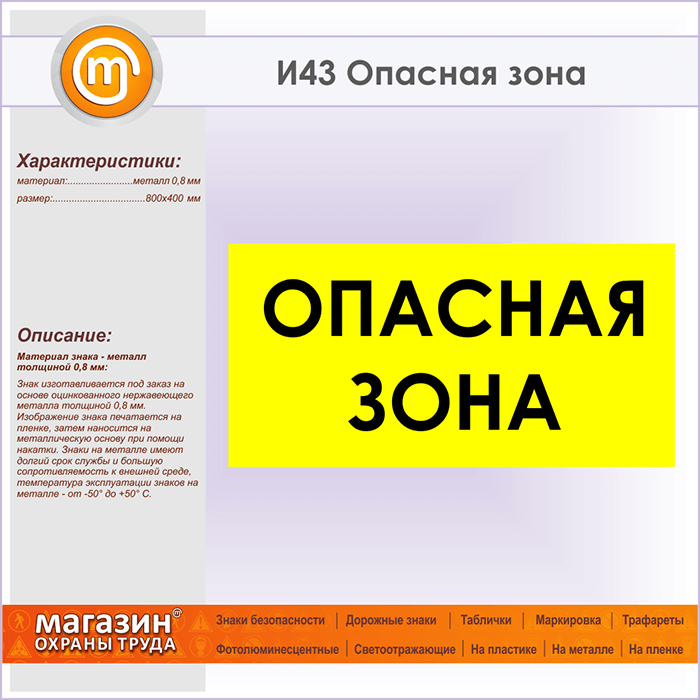Знак «Опасная зона», И43 (металл, 800х400 мм) в Ставрополе купить
