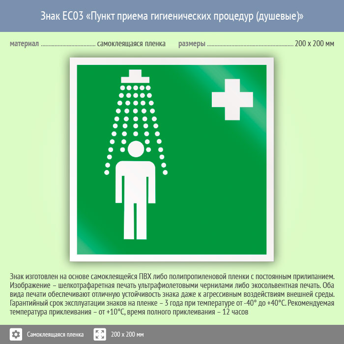 Знак EC03 «Пункт приема гигиенических процедур (душевые)» (пленка, 200х200 мм) в Ставрополе купить