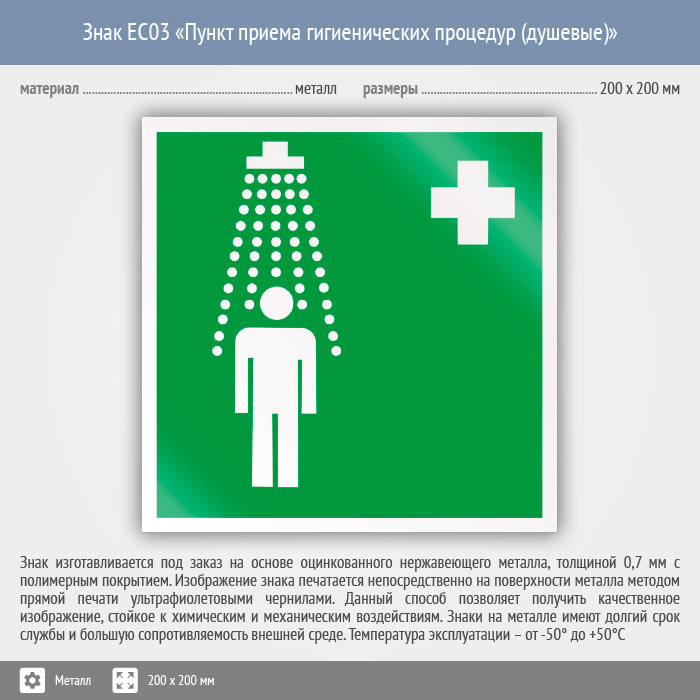Знак EC03 «Пункт приема гигиенических процедур (душевые)» (металл, 200х200 мм) в Ставрополе купить