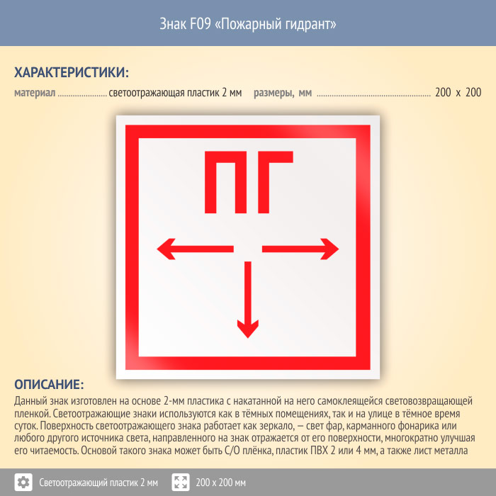 Знак F09 «Пожарный гидрант» (светоотражающий пластик, 200х200 мм) в Ставрополе купить
