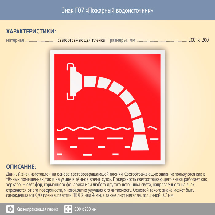 Знак F07 «Пожарный водоисточник» (светоотражающая пленка, 200х200 мм) в Ставрополе купить
