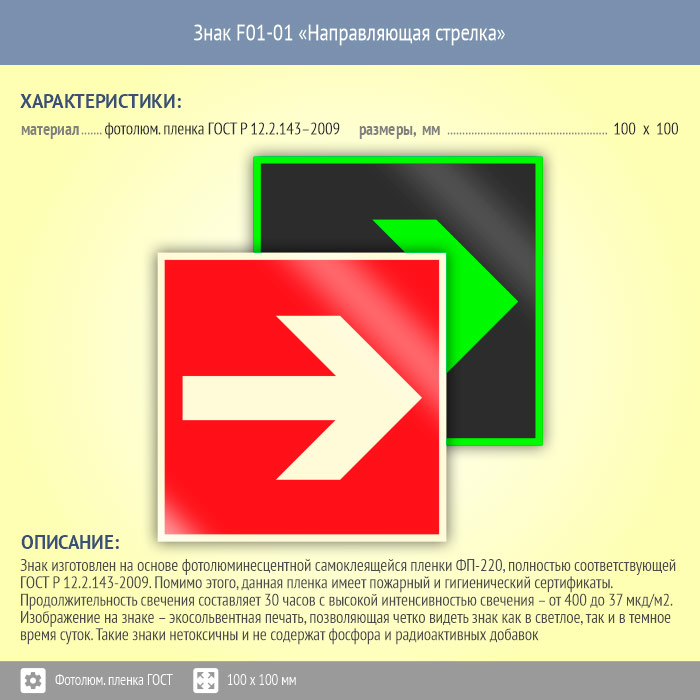 Знак F01-01 «Направляющая стрелка» (фотолюминесцентная пленка ГОСТ 34428-2018, 100х100 мм) в Ставрополе купить