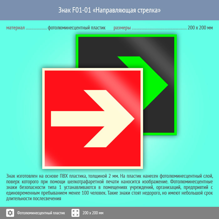 Знак F01-01 «Направляющая стрелка» (фотолюминесцентный пластик, 200х200 мм) в Ставрополе купить