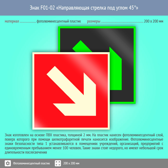Знак F01-02 «Направляющая стрелка под углом 45°» (фотолюминесцентный пластик, 200х200 мм) в Ставрополе купить