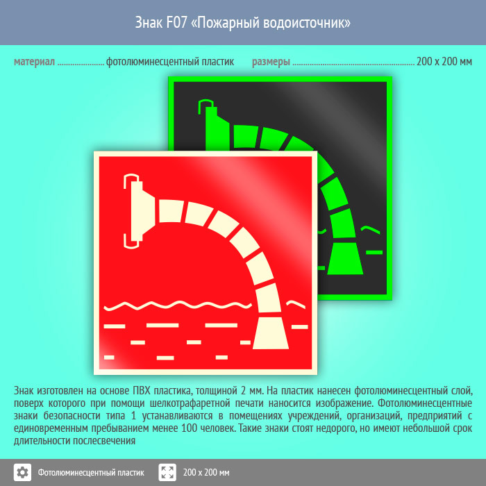 Знак F07 «Пожарный водоисточник» (фотолюминесцентный пластик, 200х200 мм) в Ставрополе купить