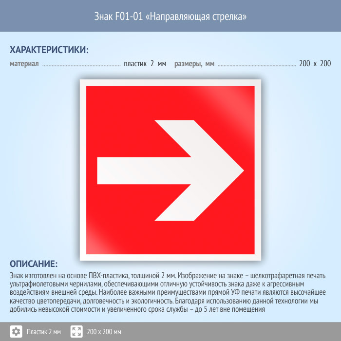 Знак F01-01 «Направляющая стрелка» (пластик, 200х200 мм) в Ставрополе купить