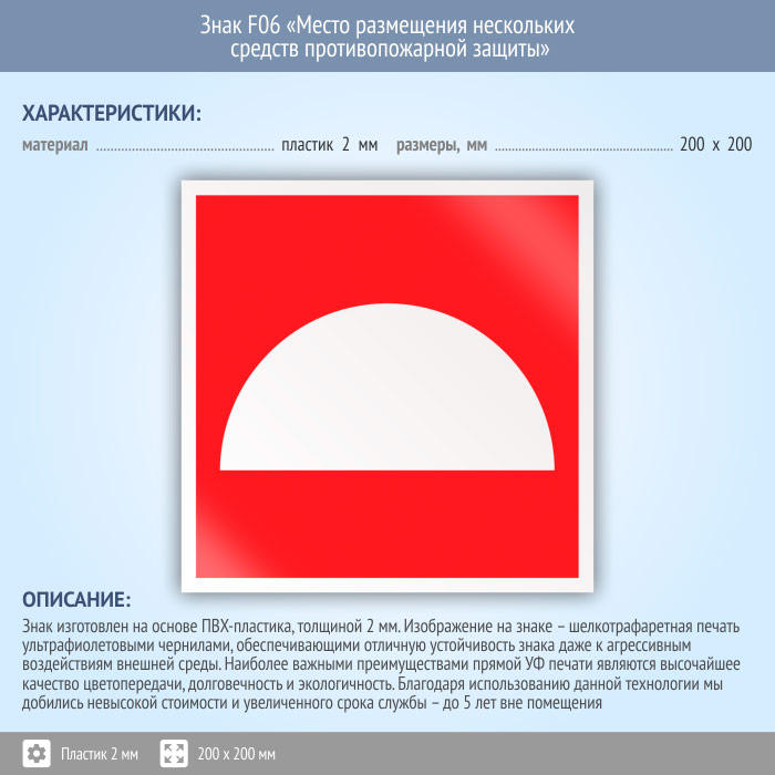 Знак F06 «Место размещения нескольких средств противопожарной защиты» (пластик, 200х200 мм) в Ставрополе купить