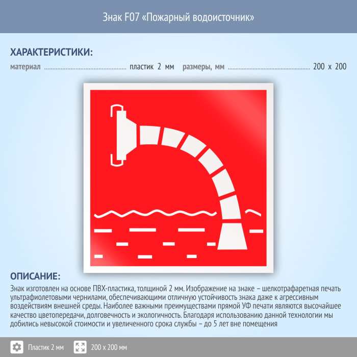 Знак F07 «Пожарный водоисточник» (пластик, 200х200 мм) в Ставрополе купить