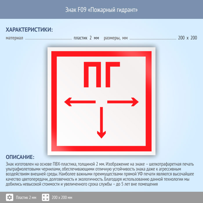 Знак F09 «Пожарный гидрант» (пластик, 200х200 мм) в Ставрополе купить