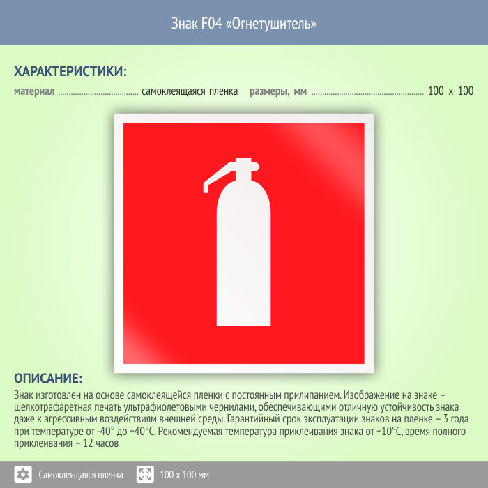 Знак F04 «Огнетушитель» (пленка, 100х100 мм) в Ставрополе купить