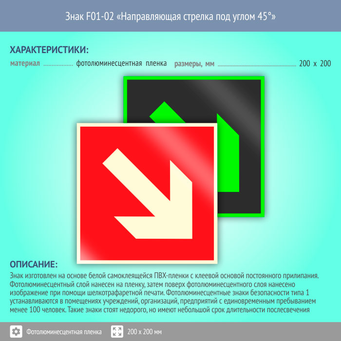Знак F01-02 «Направляющая стрелка под углом 45°» (фотолюминесцентная пленка, 200х200 мм) в Ставрополе купить