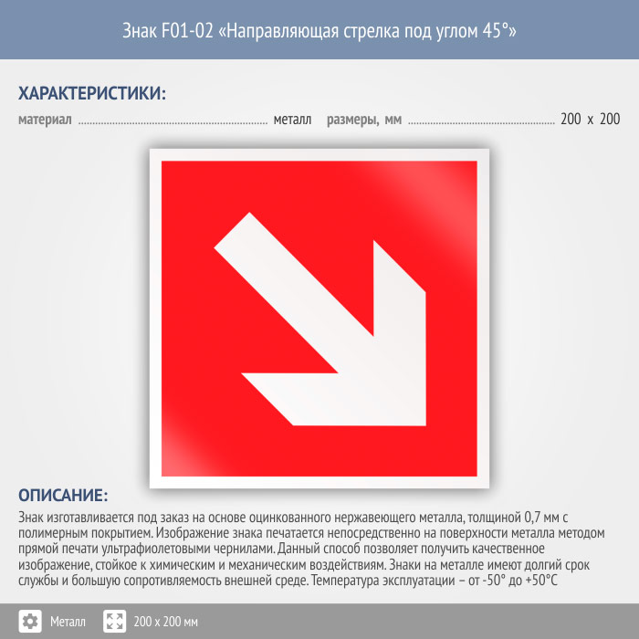 Знак F01-02 «Направляющая стрелка под углом 45°» (металл, 200х200 мм) в Ставрополе купить