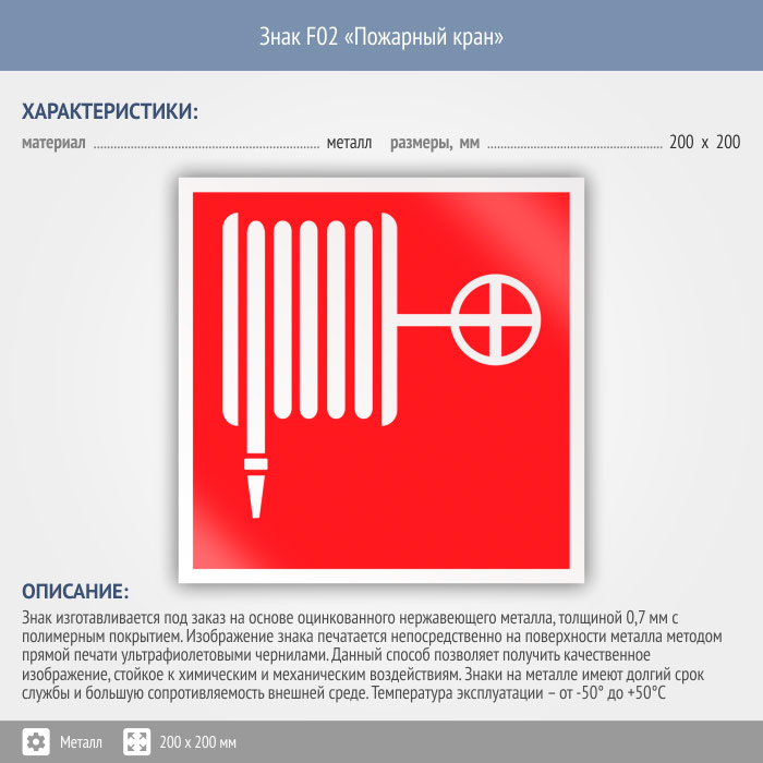 Знак F02 «Пожарный кран» (металл, 200х200 мм) в Ставрополе купить