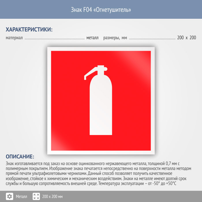 Знак F04 «Огнетушитель» (металл, 200х200 мм) в Ставрополе купить